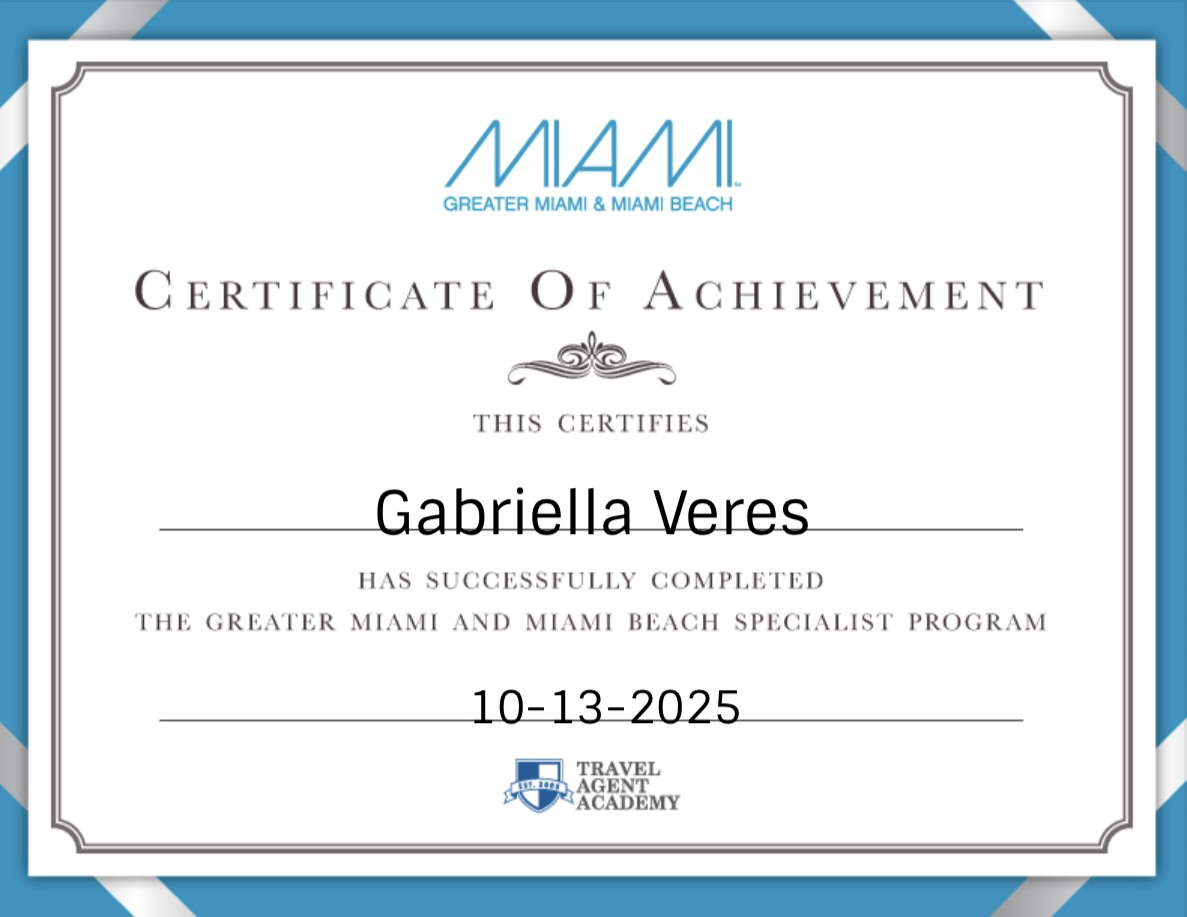 Hivatalos Florida és Miami turisztikai minősítésekkel rendelkezem, amelyek szakmai hátteret és helyismeretet adnak a magyar utazási irodák számára szervezett programokhoz és csoportkíséréshez.